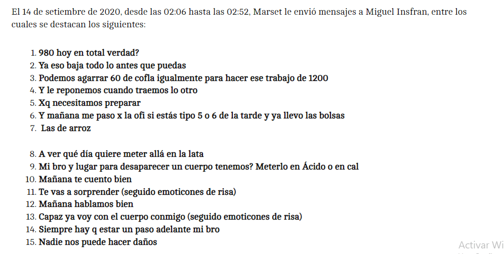 Según la acusación presentada por el fiscal Deny Pak, la sociedad entre Insfrán y Marset no se limitaba únicamente al tráfico internacional de drogas, sino que también incluía asesoría para la comisión de otros delitos, específicamente homicidios.