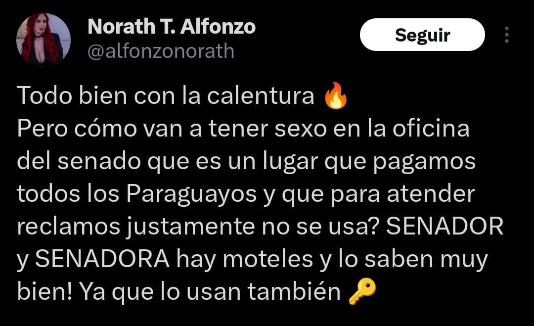 Pero el cuento no termina acá, porque días atrás, la periodista Norath Alfonso twitteó en su cuenta de X que hay legisladores que se están divirtiendo «pícaramente» en las oficinas del Congreso.