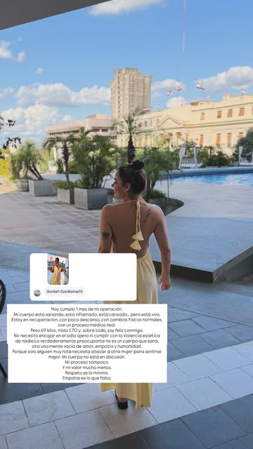 “Soy feliz conmigo misma. No necesito encajar en el odio ajeno ni cumplir con la violencia estética de nadie. Lo verdaderamente preocupante no es un cuerpo que sana, sino una mente vacía de amor, empatía y humanidad. Porque solo alguien muy rota necesita atacar a otra mujer para sentirse mejor”.
