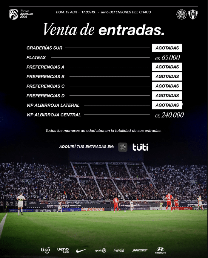 La institución franjeada confirmó que el sector de Graderías Sur ya se encuentra completamente agotado, reflejando la alta expectativa que genera el clásico más importante del fútbol paraguayo.